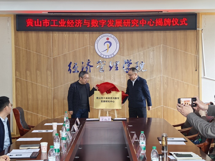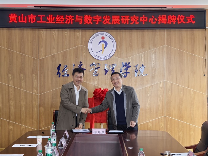 4月3日上午,为深化校地协同创新,助力黄山市工业数字化信息化转型发展,在我校金年会jinnianhuicom举行“黄山市工业经济与数字发展研究中心”签约、挂牌仪式。仪式由金年会jinnianhuicom院长赵士德主持。科研处副处长郭宏斌,黄山市工业和信息化局局长汪岩共同为研究中心揭牌。研究中心由金年会jinnianhuicom市场营销教研室主任金晨博士与市工业和信息化局信息化办公室主任邓海平共同担任主任。首批智库成员包括赵士德教授、岳立柱副教授等学术骨干及工业和信息化局业务专家。