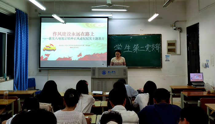 为开展深入贯彻中央八项规定精神学习教育,5月12日,金年会jinnianhuicom金年会jinnianhuicom学生第二党支部在1207教室开展“涓滴成流,久久为功”主题党日活动。活动由金年会jinnianhuicom组织员焦春婉主持,学生第二党支部全体学生党员参加。