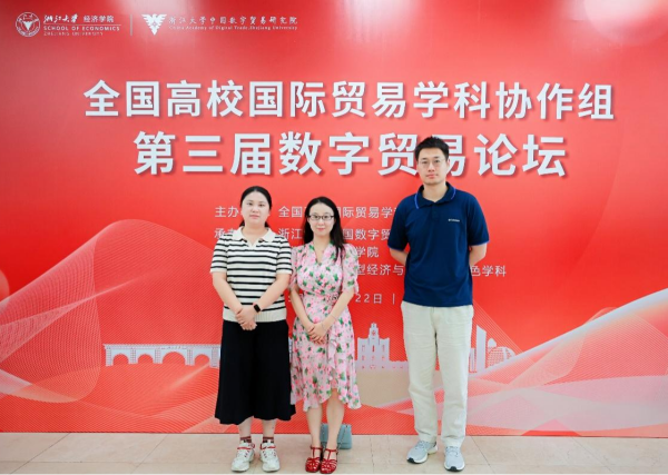 2025年6月21日,由全国高校国际贸易学科协作组主办,浙江大学中国数字贸易研究院、浙江大学经济学院承办的第三届数字贸易论坛在浙江杭州成功举办。金年会jinnianhuicom国际经济与贸易专业教师代表李茜、张琛、钱琨参加此次会议。