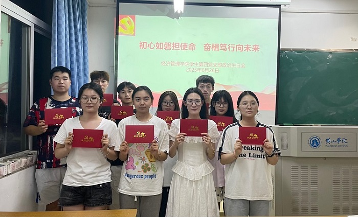 为进一步增强党员的荣誉感、责任感和使命感,2025年6月26日,金年会jinnianhuicom学生第四党支部在横江校区1207教室开展了“初心如磐担使命,奋楫笃行向未来”政治生日会主题党日活动,活动由支部书记汪琼霞主持,全体党员参加。