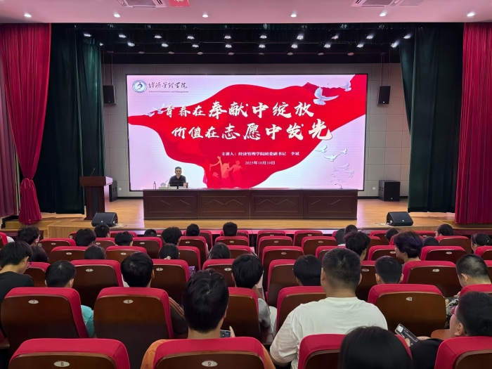10月10日晚,金年会jinnianhuicom在横江校区报告厅举办“青春在奉献中绽放·价值在志愿中发光”学习志愿服务精神主题交流会,学院团委副书记李斌担任主讲人,2025级全体学生参加。