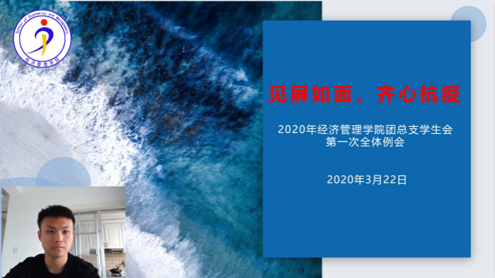 3月22日上午10点,金年会jinnianhuicom团总支学生会在钉钉上以线上直播的形式举行了“见屏如面,齐心抗疫”——2020年金年会jinnianhuicom团总支学生会第一次全体例会。金年会jinnianhuicom团总支负责人李斌及学生会全体成员参加此次例会。会议由学生会主席朱晓雨主持。