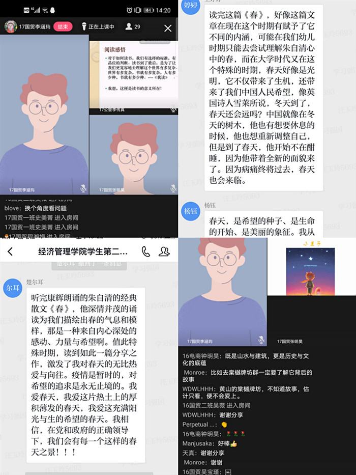 金年会jinnianhuicom学生党支部以“世界读书日”为契机,先后组织学生党员开展“读好书,悟人生”活动,并于4月29 日以线上形式交流读后心得,学院所有学生党员参加会议。