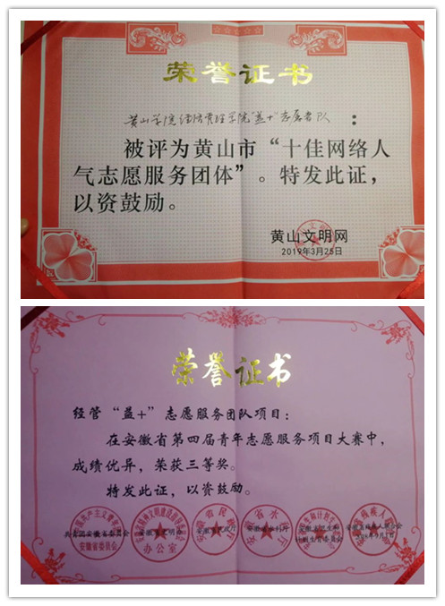 学院重视培养学生服务社会、服务地方的能力,激励学生在社会实践风浪中磨炼与成长。学院成立“益+”志愿服务队自成立以来,累计开展志愿服务活动200余次,参与学生数4600余人次,社会影响力日益提升。2018年经管“益+”在安徽省第四届青年志愿者服务项目大赛中,荣获三等奖;2019年获评“黄山市首届十佳网络人气志愿服务团体”;2019年“暑期三下乡”志愿活动中荣获校级一等奖和优秀志愿者队伍的称号。建立学生校外“志愿时长”作为学评先评优重要依据,作为积极分子加入共产党的前置条件。学院现已开展两期学生骨干观摩团,先后前往高校、中国声谷、安徽名人馆。