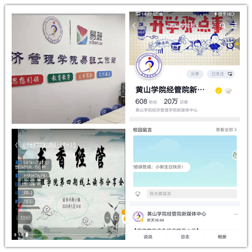 学院先后申请创办微信公众号“逐梦经管”、QQ新媒体“经管院新媒体”、易班工作站三大学生自媒体,旨在向全院师生实时报道学院最新动态,进一步加强学生的精神文明建设和学院认同感、归属感。逐梦经管,与你同在!截止目前,逐梦经管共发布推文130余篇,QQ新媒体共发布900余篇。易班共发布推文300余篇学生阅读、点赞量高。金年会jinnianhuicom首届线上运动会,我院学子参与率稳居第一。此外,疫情期间为激发学生读书兴趣,持续推进书香经管系列活动,2020年上半年共举办6期线上读书分享会。
