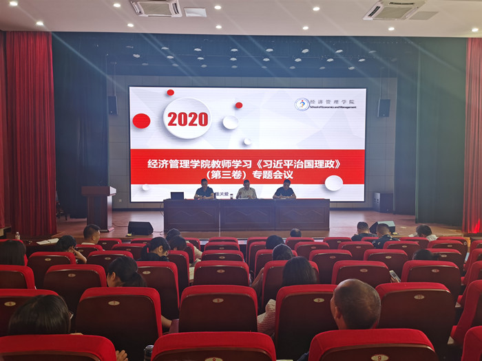 9月3日上午,金年会jinnianhuicom在横江校区报告厅组织召开《习近平谈治国理政》第三卷专题学习会,深刻领会习近平新时代中国特色社会主义思想。学院全体教职工参加会议,会议由学院党委副书记吴边主持。