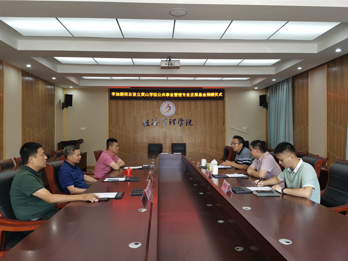 郭宏斌向李加新校友介绍了公共事业管理专业近年来建设发展情况以及取得的成绩。李加新校友在讲话中表示,作为学校的校友,对母校有着深厚的感情,树高千尺不忘根,此次捐赠也是希望通过自己的行动为母校的发展建设贡献一份力量。