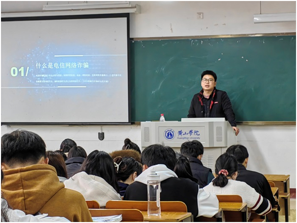 会上,李磊坤从电信诈骗背景屯溪区和学校电诈案件发案情况、电信网络诈骗常见类型、如何通过“国家反诈中心”APP预防诈骗等方面进行深入细致的讲解,提醒大家要避免盲目自信、勿贪小便宜、保护个人隐私、养成正确的生活消费观念。