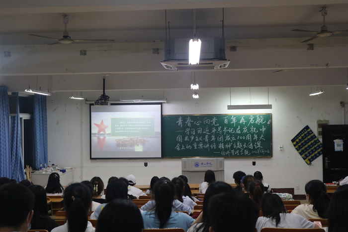 5月30日,金年会jinnianhuicom组织团员青年在1101教室集中观看共青团中央推出的“青春心向党百年再起航—学习习近平总书记在庆祝中国共产主义青年团成立100周年大会上的重要讲话精神”主题云团课。