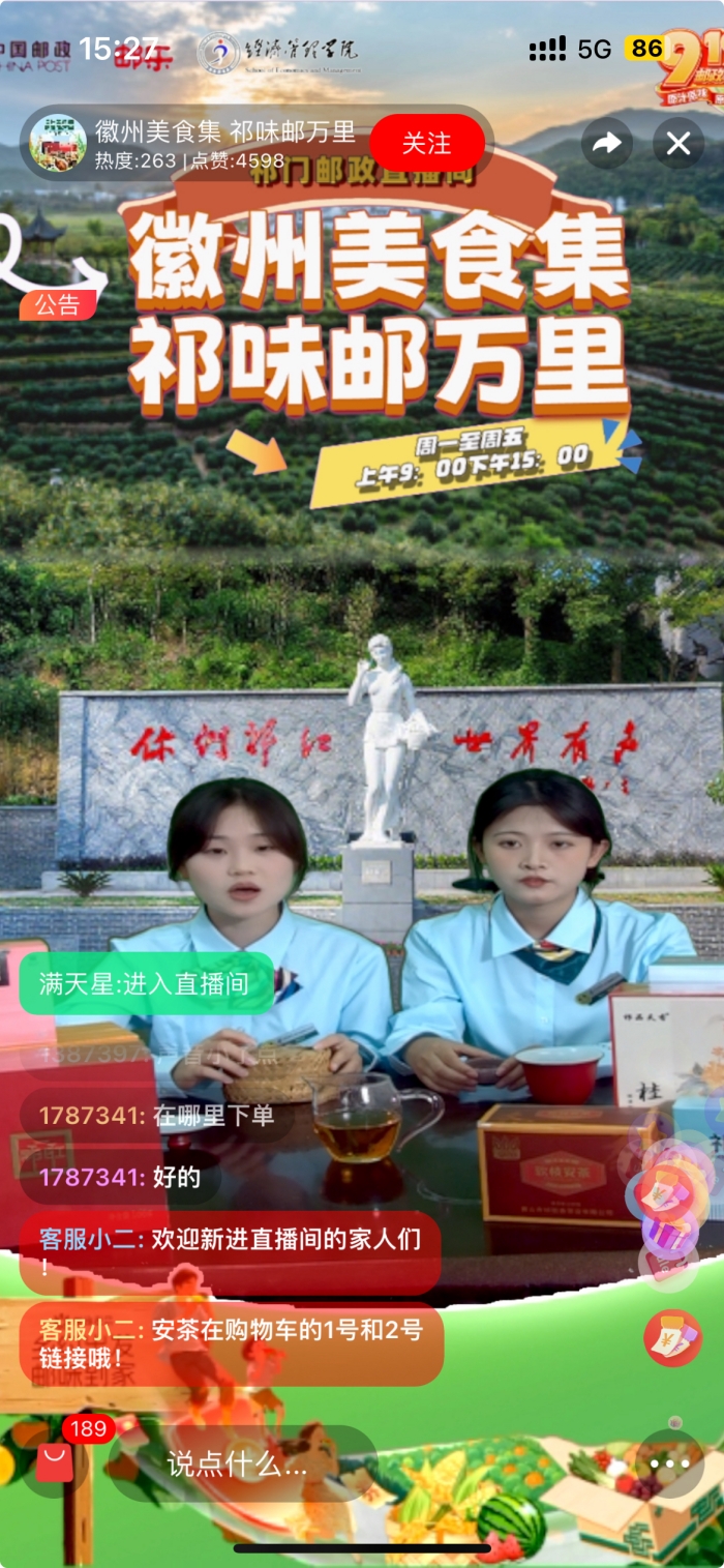 团队在邮政电商平台开设专属直播间,每日直播2-3场,每场2-2.5小时,推介销售祁门红茶、徽州臭鳜鱼、笋衣等产品。祁门邮政提供定制包装与快速配送,确保产品新鲜送达。直播设有试吃、实物展示等环节,让网友感受不一样的乡间风味。下播后,团队分析观看量、订单量等数据,总结经验与不足,还通过多平台宣传活动成果与助农故事,提升祁门特色农产品知名度。6天里,该团队总计售出277件商品,合计销售额3167元,商品浏览总人数5万+,点赞12701次。