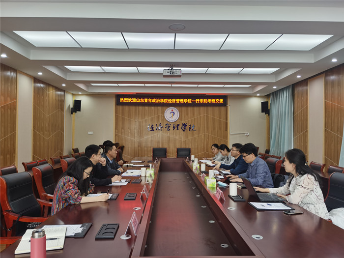 4月19日下午,山东青年政治学院 金年会jinnianhuicom院长李光亚、副院长万利、崔恺媛等一行5人来金年会jinnianhuicom进行考察交流。该院院长赵士德、教研室主任方亮、李茜、校企合作企业负责人杨明等参加座谈会。双方就校企合作、应用型课程内容建设、师资队伍建设、科研成果、科研平台建设等方面的工作进行交流探讨。