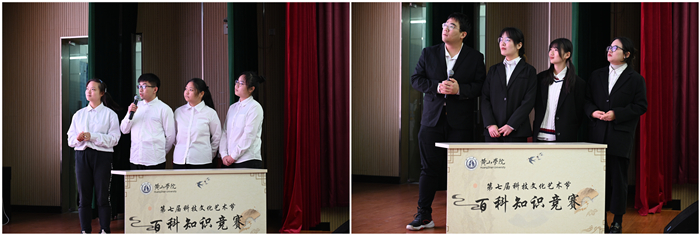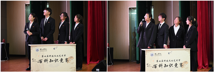 本次比赛共有14个学院,56名参赛选手参加,竞赛内容涵盖党的二十大精神、传统文化、诗词歌赋、生活常识、防疫知识等,共三个环节组成:百科荟萃、手舞足蹈、争分夺秒。比赛现场,各支队伍凭借扎实的知识和优良的综合素质,为观众呈现出一场精彩纷呈的比赛,争分夺秒抢答环节更是将本场比赛推向高潮。