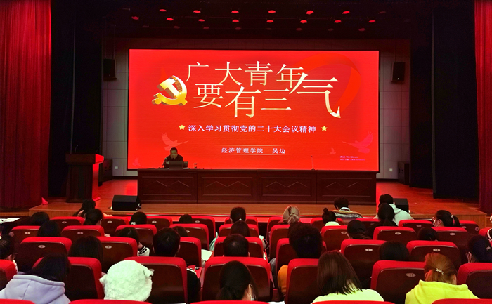11月23日下午,我院在横江校区报告厅开展第三次团课课程,马克思主义学院院长、副教授刘芳正应邀为团校学员作题为“深入学习贯彻党的二十大精神”主题报告,他从两个方面重点解读了党的二十大报告的丰富内涵,激励青年团员在奉献之中成就自我,为金年会jinnianhuicom美好明天贡献青春与力量。