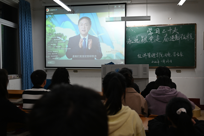 11月26日晚,金年会jinnianhuicom组织团校成员集中收看“学习二十大、永远跟党走、奋进新征程”主题云团课。此次云团课带领全体同学全方位学习解读党的二十大精神的重要意义和丰富内涵,以新时代好青年应有的姿态,奋进新征程,诠释新使命,创造新业绩。