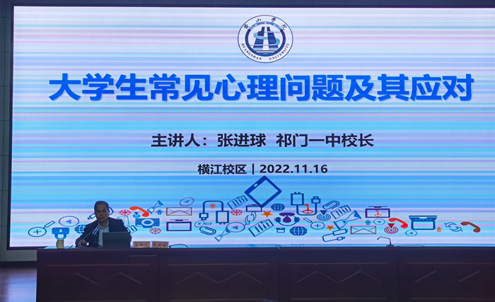 11月16日下午,安徽省祁门县第一中学校长张进球应邀来学院作题为“大学生常见心理问题及其应对”报告。此次团课旨在帮助学员积累心理健康知识,提高应对心理问题的能力,促进大学生的全面发展与健康成长。