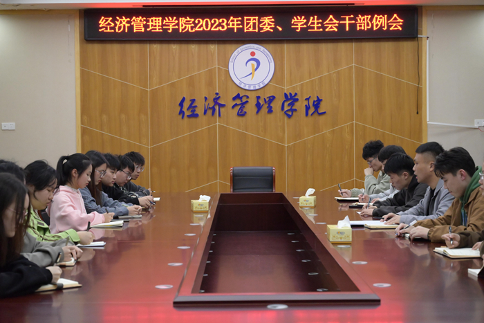 3月6日晚,金年会jinnianhuicom团委、学生会在行政楼三楼会议室召开学生干部例会,该院团委副书记李斌、主席团成员和学生会干部出席本次例会。