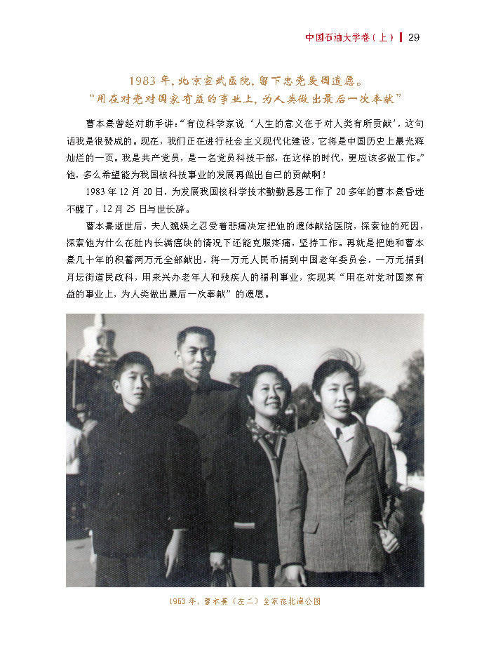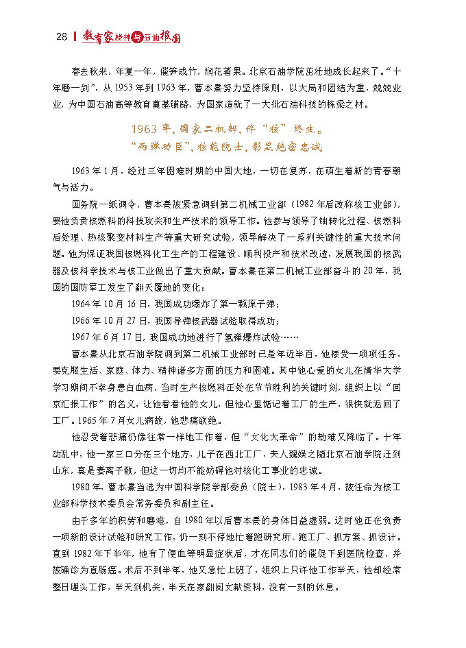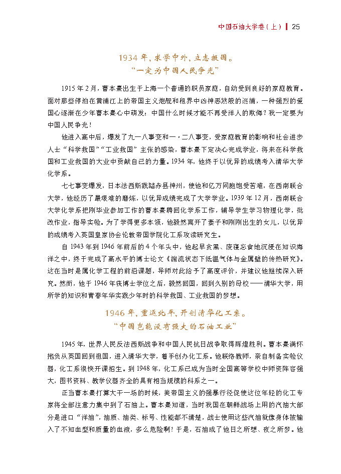 “适应石油发展的形势,就要求学院不断提高师资水平,充实和完善各课程的实验设备,提高教学水平,广泛开展科学研究,创立良好的学术空气,要使学院成为全国第一流的高等学府,具有国际水平。”