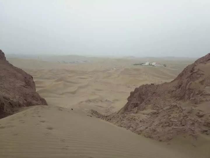 在4个多小时的车程后,我们进入距最近的一所村庄158公里的塔克拉玛干沙漠的中心,那里有两簇建筑,地表温度高达60℃,没有胡杨,没有任何自然生长的植被。