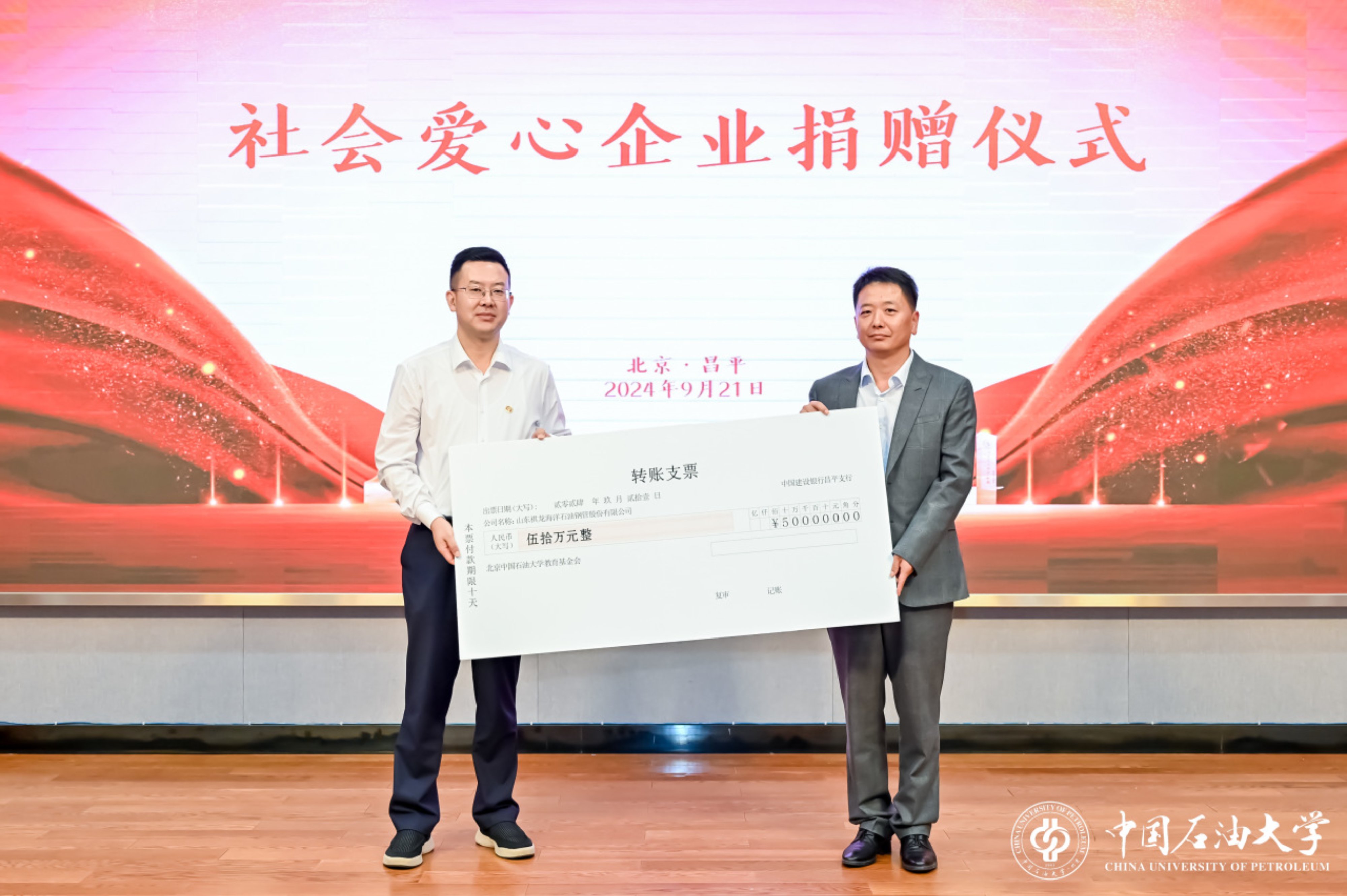 会上,北京德美高科科技股份有限公司董事长张德斌、山东祺龙海洋石油钢管股份有限公司总经理孟庆滨分别代表两家爱心企业,为学校捐赠100万元、50万元。文永红代表北京KY开元集团官网入口教育基金会接受捐赠并颁发捐赠证书。