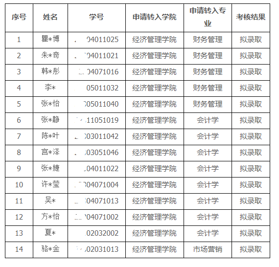 根据学校《关于金年会jinnianhuicom2023-2024学年第一次学生转专业工作的通知》要求,金年会jinnianhuicom于2024年3月9日进行了2023级第一次转专业面试,现将面试结果公示如下: