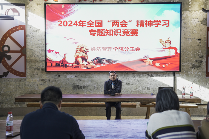 竞赛活动以教研室为单位进行组队,采取团队PK的形式,每支队伍轮流从题库中随机抽题回答,题库涵盖了今年两会的重要决策、政策导向以及经济社会发展的热点问题,全面考察了参赛选手对两会精神的掌握和理解。活动现场精彩纷呈、掌声不断,各团队以饱满的热情和深入的理解,充分展示了他们对两会精神的深刻领悟和团队协作能力。经过激烈的角逐,最终市场营销教研室团队荣获本次竞赛活动的冠军。他们不仅展现了对两会精神的深刻理解和应用能力,也展示了教研室团队之间的默契配合和集体智慧。