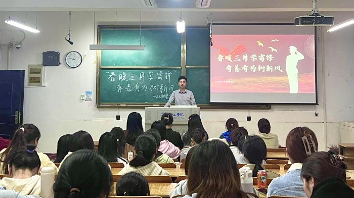 3月25日,22财管班、22营销班在横江校区1324教室开展“春风三月学雷锋,有善有为树新风”主题团日活动。辅导员吴伟航到场指导,班级全体同学参加。