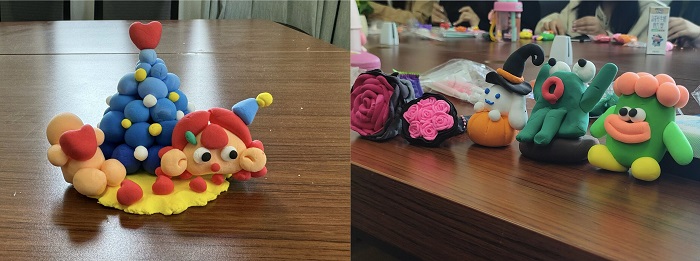 活动伊始,江雨晴带领同学们进行“你画我猜”小游戏,充分活跃现场氛围。随后将粘土和彩色珠链等材料分发给参与的同学们,开始制作环节。活动中,同学们积极参与,充分发挥自己的想象力和动手能力,五颜六色的粘土在同学们的手中变成了一个个可爱的小摆件。整个活动在欢声笑语中有序进行,氛围轻松且活跃。制作完成后,大家相互欣赏,为自己的作品拍照留下纪念。活动最后,全体成员一起合影留念。