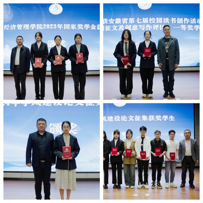 会上,郜玉振解读了《金年会jinnianhuicom2024年学风建设方案》。对2024年学风建设论文征集获奖的师生、安徽省第七届校园读书创作活动荣获一等奖的学生、2023年国家奖学金获得者进行颁奖。