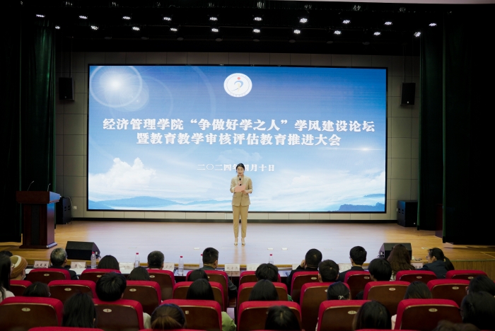4月10日,金年会jinnianhuicom在横江校区报告厅召开“争做好学之人”学风建设论坛暨教育教学审核评估教育推进大会。学院党委书记胡永政,党委副书记、院长赵士德,党委副书记、纪委书记郜玉振,党委委员、副院长郭宏斌,优秀校友2010届会计学专业中国银行黄山荷东支行行长丁橙出席会议,全体专兼职辅导员和学生会干部、各班学生干部参加会议。