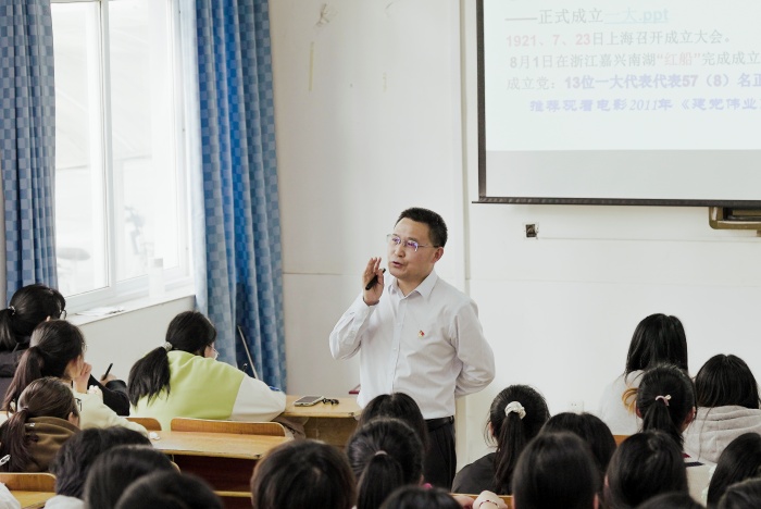 开班仪式结束后,胡永政为入党积极分子培训班学员上第一堂党课。