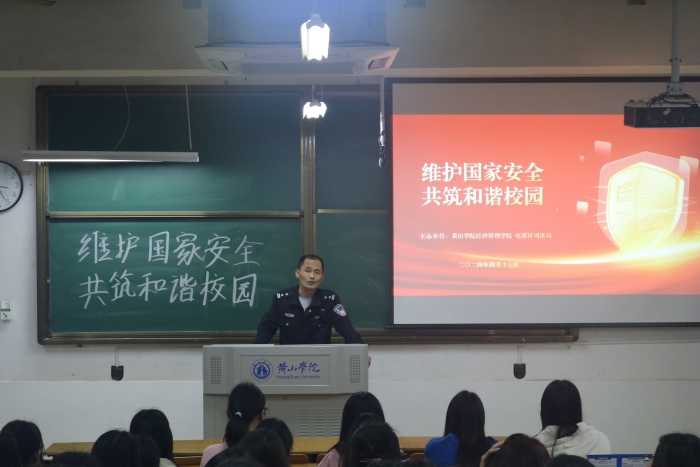 4月17日下午,金年会jinnianhuicom在横江校区教学楼1103教室举办普法进课堂活动,诚邀屯溪区司法局和昱西街道工作人员作为主讲人为青年大学生授课。