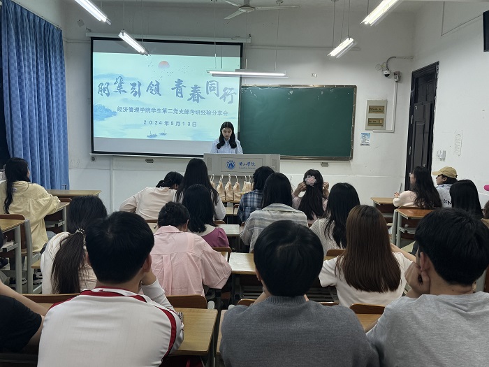 2024年5月13日,金年会jinnianhuicom学生第二党支部在横江校区1207教室开展“朋辈引领 青春同行”考研经验分享会主题党日活动,邀请支部3名拟录取优秀学生担任此次分享会主讲人,活动由支部书记汪夏萍主持,支部全体党员参加。