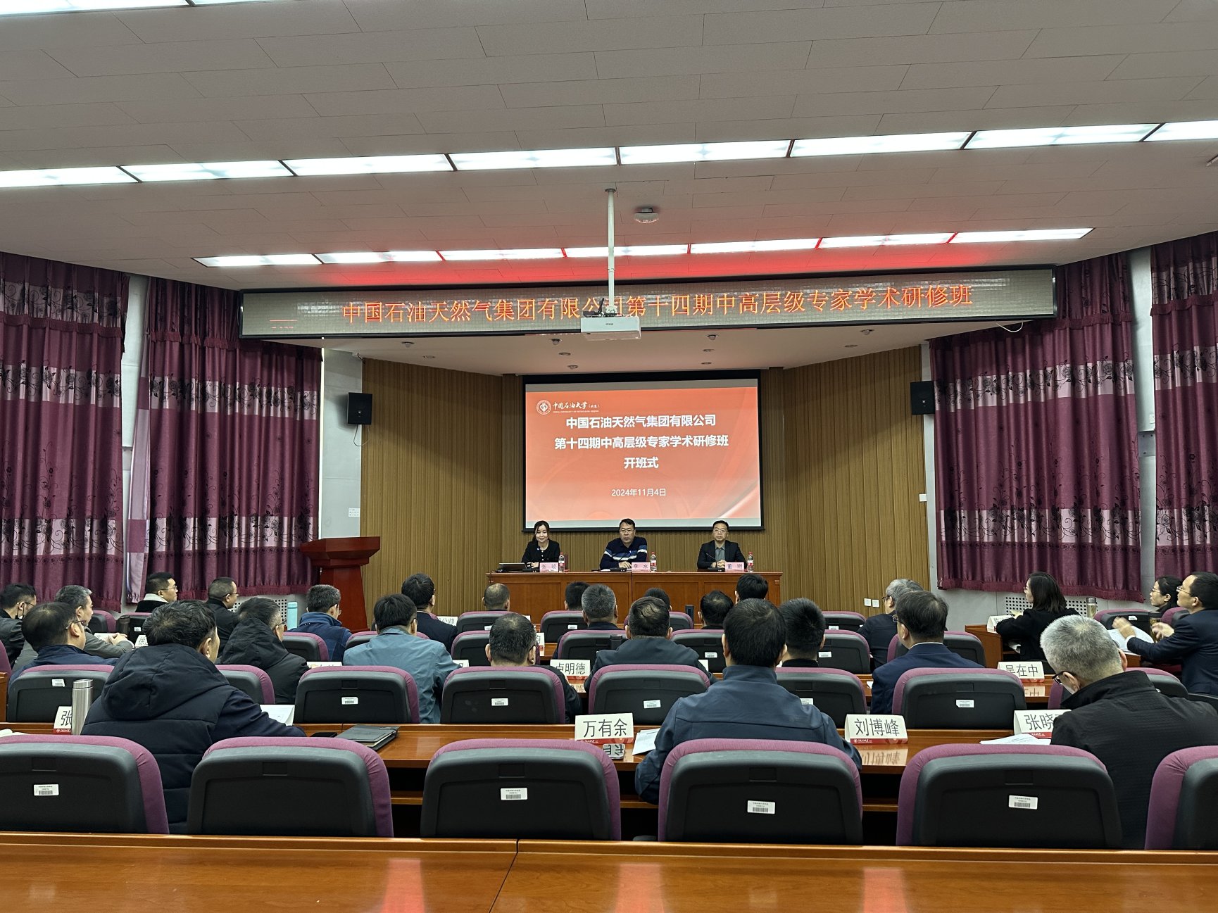 2024年11月4日,中国石油天然气集团有限公司第十四期中高层级专家学术研修班在我校培训基地顺利开班。网络继续教育学院副院长李水出席开班式并讲话。