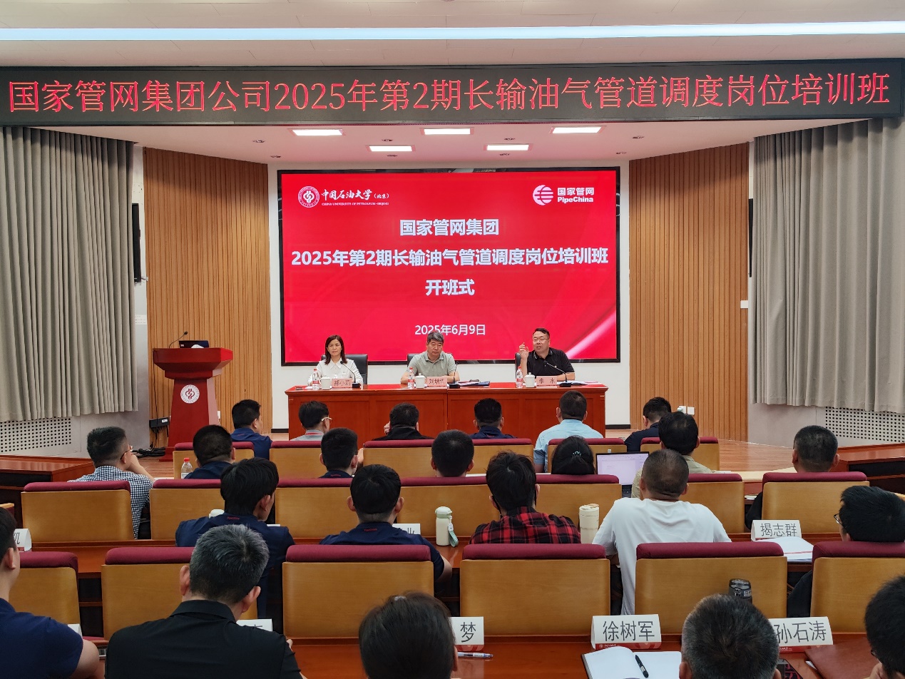 6月9日, 国家管网集团2025年第二期长输油气管道调度岗位培训班开班仪式在我校举行。本期培训聚焦长输管道天然气调度业务,为期21天,来自国家管网集团、江西省天然气管道有限公司、江西省天然气投资有限公司等单位的33名业务骨干参训。国家管网集团油气调控中心组织与宣传部经理刘增哲、我院副院长李水出席开班式,仪式由我院高层次人才发展中心主任郝小莉主持。