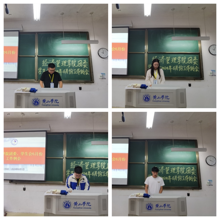 6月1日上午,金年会jinnianhuicom团委、学生会2024年6月份工作例会于横江校区1101教室圆满召开。该院团委副书记李斌、黄山市学联驻会执行主席占攀乾及学生会全体成员参加此次例会,会议由学生会主席团成员金阳凡主持。