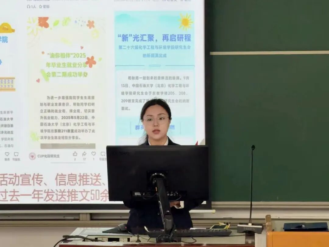 化学工程与环境学院第二十六届研究生会主席团成员王亿新、许渤笛、管国晶分别对所分管部门未来的工作做出规划。规划围绕 “学术、服务、文化” 三大核心方向展开:在学术方面,打造 “化研启思”学术沙龙等活动,助力研究生提升科研能力;在服务方面,将建立 “研究生需求调研常态化机制”,针对就业、心理健康等问题推出精准服务;在文化方面,组织 "研动我心"文化季等活动,丰富研究生课余生活,增强集体凝聚力。此外,规划还明确了研会内部建设方案,包括完善管理制度、加强成员培训等,确保各项工作落地见效。