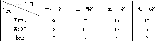 注:特等奖按一、二名加分,一等奖按三、四名加分,二等奖按五、六名加分,三等奖按七、八名加分。