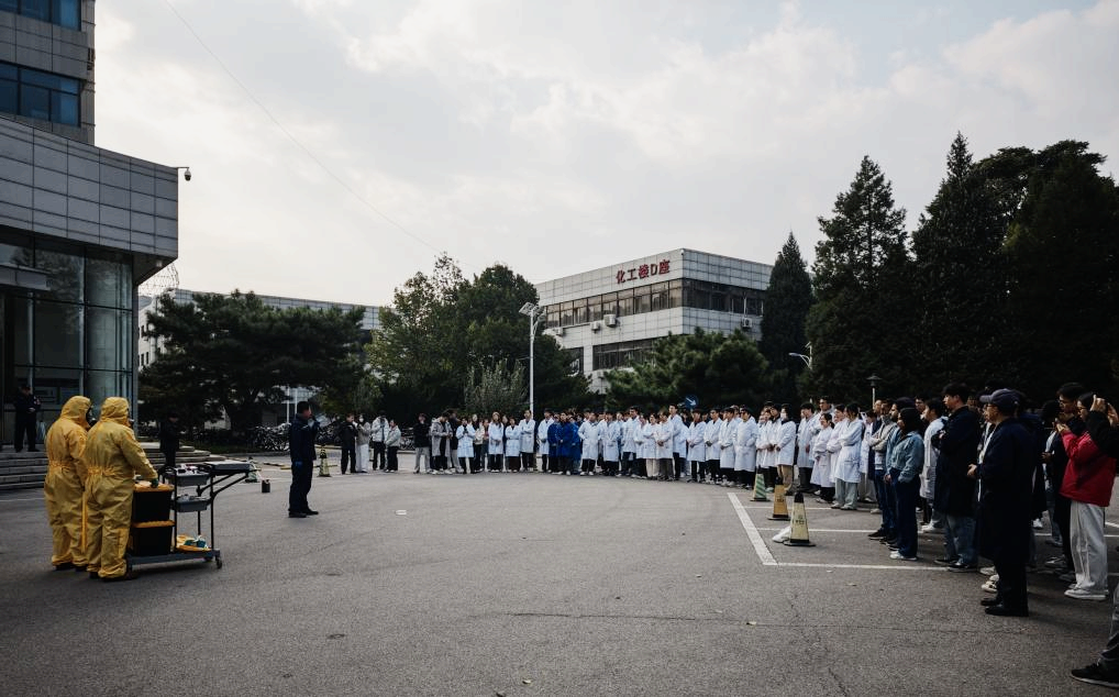 10月23日,学院联合实验室与平台管理办公室、保卫处等单位开展实验室危化品泄漏应急演练,模拟氢氟酸泄漏事故,完整演练从人员疏散、伤员救护到泄漏处置的全流程,有效检验应急预案的可行性与各部门协同处置能力。