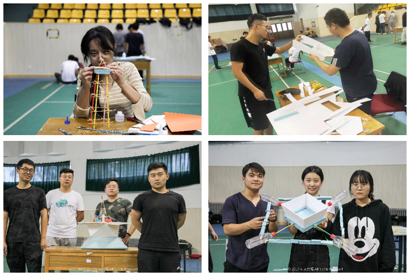 21日上午,浮体模型制作环节在体育馆举行,各组选手充分展现了自身所学专业知识,灵活运用给定的各种制作材料和工具,制作出一个个外观精美而又形态各异的浮体模型。随后,每组参赛模型依次进行测量称重,送至东校区实验楼410造波实验室进行,对参赛浮体模型进行造波试验,并向其中加载重物,以测试浮体模型的装载能力及稳定性。