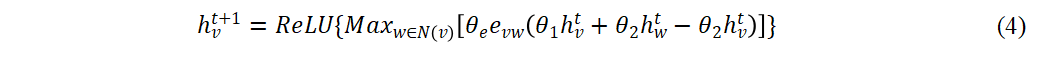 在本文中,CMPNN框架中节点嵌入的更新过程表述为式(4):