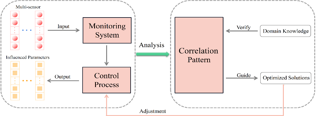 对于配备高密度传感器的大型复杂工业设备,探索其生成的多区域监控参数对后续控制环节的潜在影响对于优化控制过程具有重要意义。然而,这些众多监控参数与随后的受影响参数之间关联的内在机制和随机性复杂,并且控制系统的每个工况都有其独特性和控制规则,这使得有效分析这些不同类别参数集之间的相关性变得具有挑战性。本文提出了一种结合参数融合和典型相关性分析(CCA)的方法,针对这种高维工业控制数据,构建了一个支持多视角和多层次探索典型关联模式的可视化分析框架CAPVis。对于单个工况,我们通过特别设计的三部图可视化典型相关关系的复杂结构,并使用多个辅助视图评估这些关系的冗余性和稳定性。对于多个工况,我们设计了不同的可视化比较策略,支持从局部到全局的多对多典型相关模式比较。在真实工业控制数据集上的实验和领域专家的反馈证明了CAPVis的有效性。