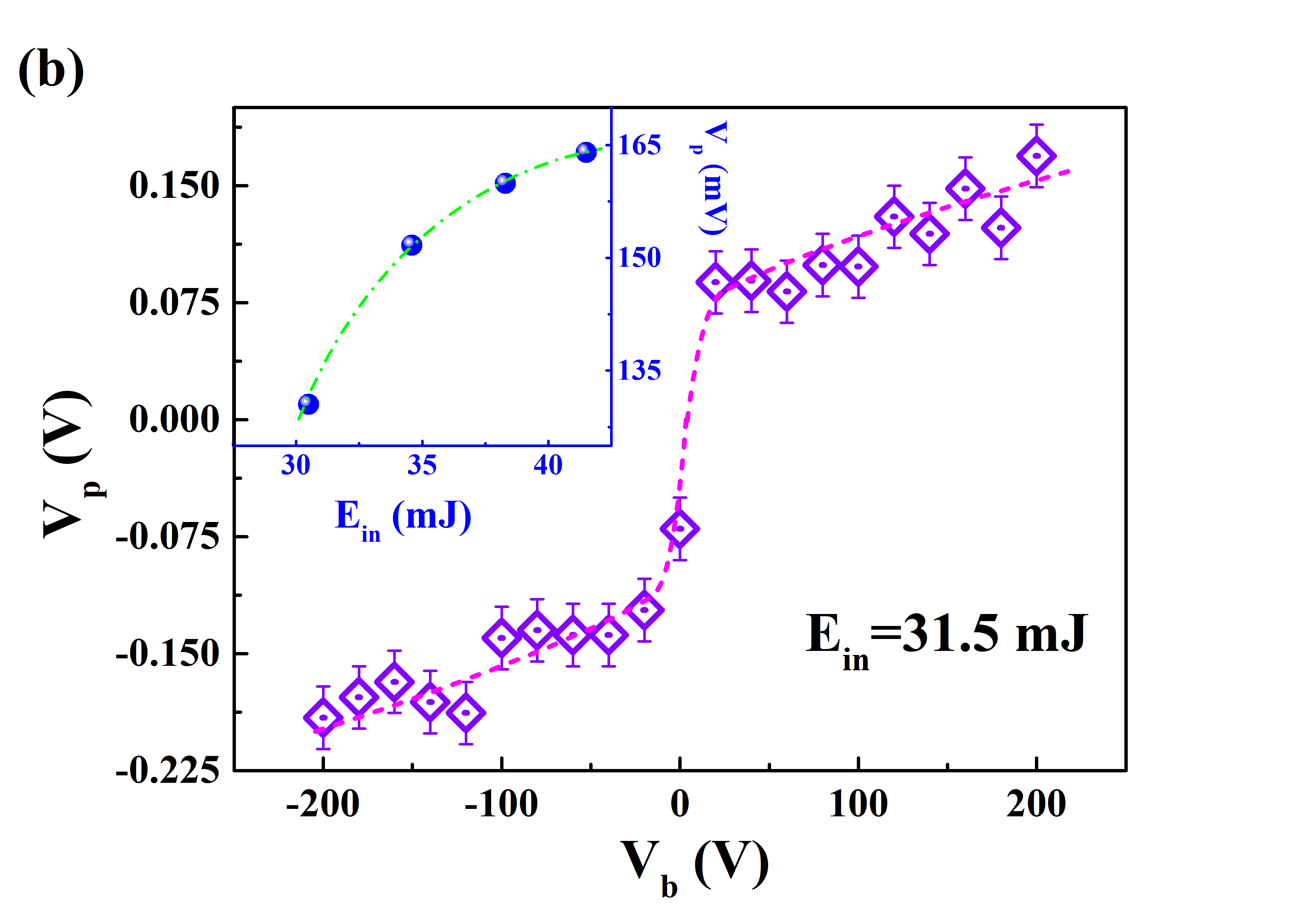 图1 (a)LIV响应信号;(b)Vp随Vb和Ein的函数关系