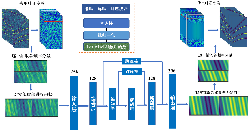 该过程即为式(6)的逆过程,利用编码器的稀疏系数重构数据。在整个过程中由于压缩作用,会将不相干的噪声压制,而只保留相干性较强的有效信号。