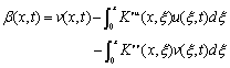 原系统(2)是一个一阶线性双曲PDE系统,其中包含两种状态相互耦合。该系统本质上是一个稳定的系统,并且具有瞬态响应。但由于系统状态的强耦合性,难以得到该PDE的解析解,所以在原系统上直接进行控制器设计并不可取。考虑以下Volterra变换(backstepping transformation):
