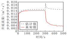 仿真结果表明, 在气侵发生前, 环空中无气相存在, 文献[12]所提单相水力学模型准确刻画了井底压力与井底流量的变化趋势, 其自适应观测器能够准确地估计井底流量与压力. 但是, 当仿真进行至300s 时, 井下突然发生气侵, 环空流体从单相流转变为气液两相流, 文献[12]中提出的机理模型及观测器方法估计精度大大降低, 自适应观测器估计井底流量的平均相对误差达到了74.67%,估计井底压力的平均相对误差为1.52%。