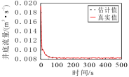 针对已建立的气液两相流模型,使用自适应观测器估计井下未知参数及状态。首先假设井底已发生气侵,井下未知参数的估计结果如图1—图3所示,井底流量和压力的估计结果如图4—图5所示。