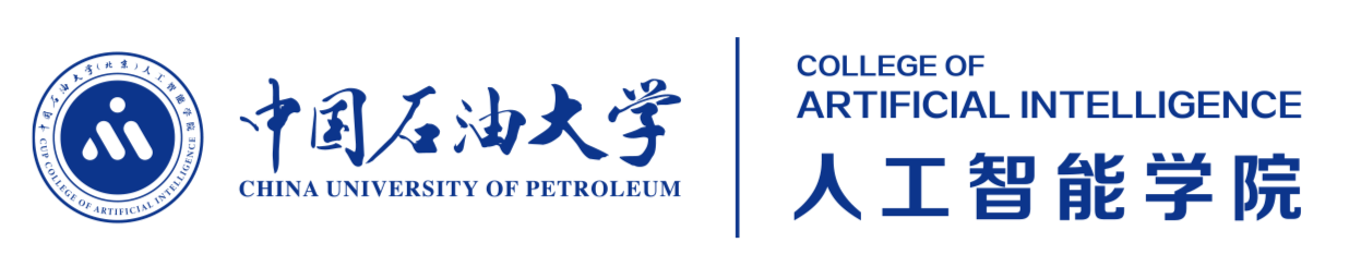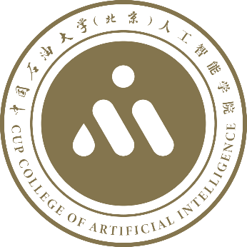 人工智能学院院徽由外环和内部标志组成,外环为中英文校名、院名,内部标志为字母“AI”和石油“油滴”组合成的等边三角形。