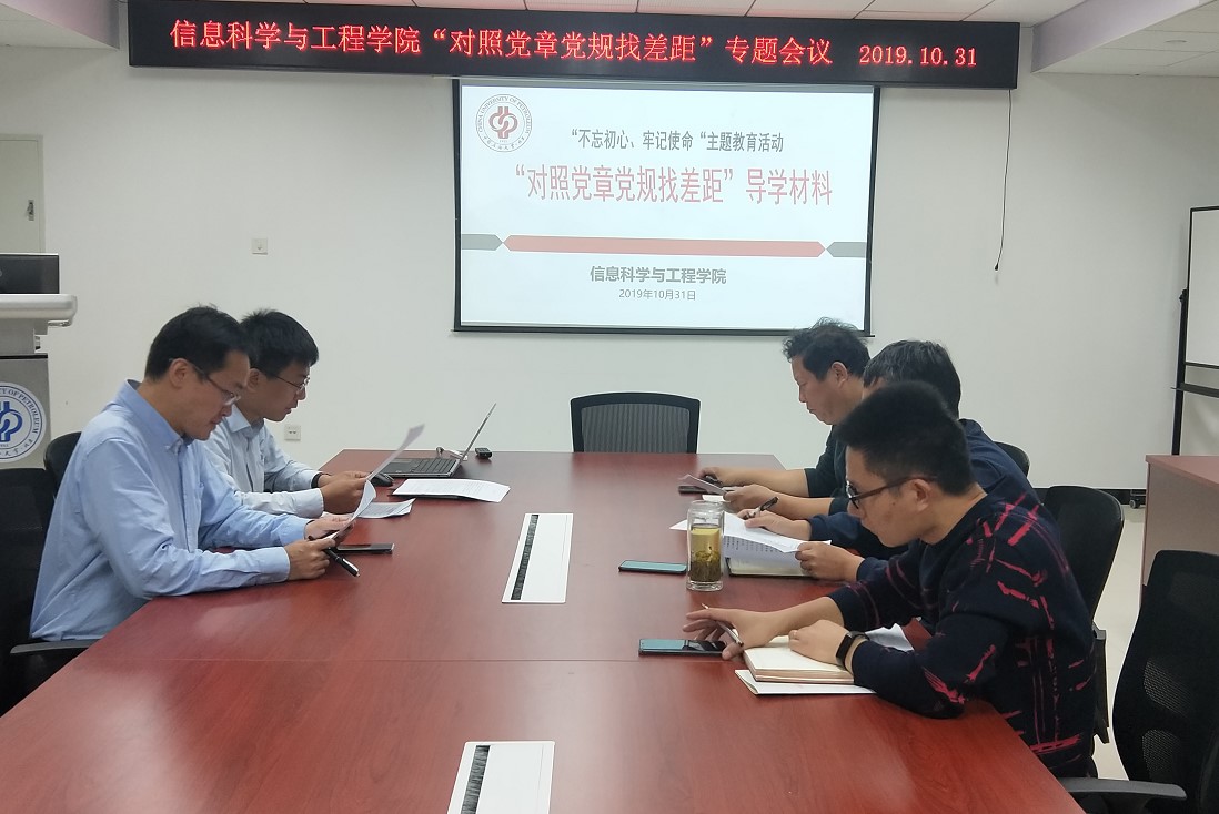 根据学校“不忘初心、牢记使命”主题教育工作安排,10月31日上午,石大信息科学与工程学院领导班子在主楼B1421会议室召开“对照党章党规找差距”专题会,领导班子全体成员参加了会议。会议由学院党委副书记董艳军主持。