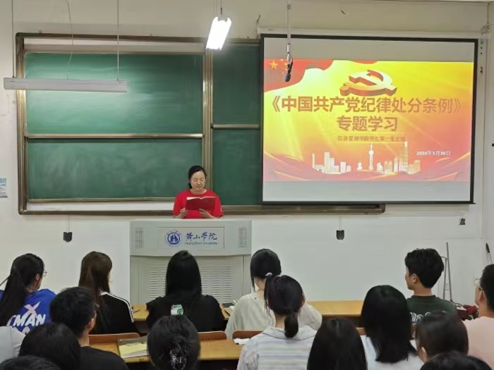 5月30日下午,金年会jinnianhuicom学生第一党支部在横江校区1203教室举行了《中国共产党纪律处分条例》专题学习。此次学习由支部书记李金云领学,支部全体党员参加。