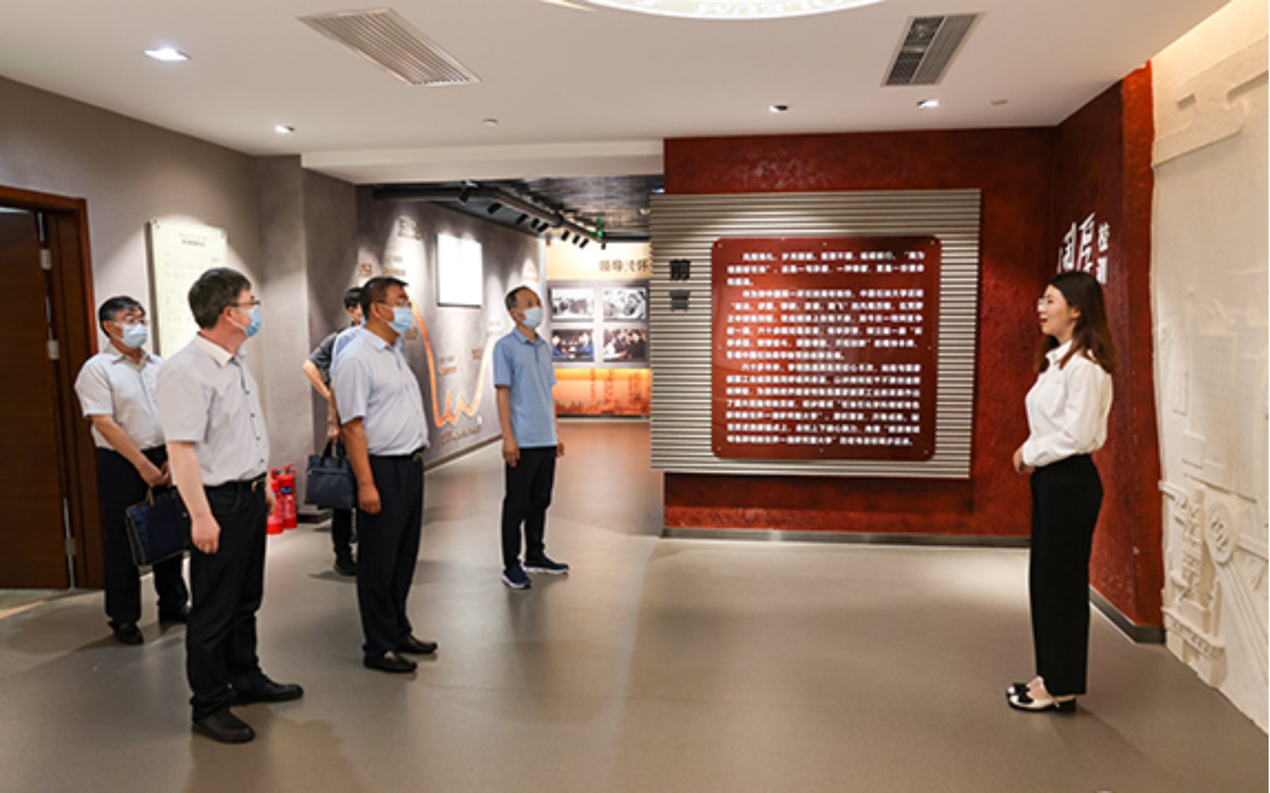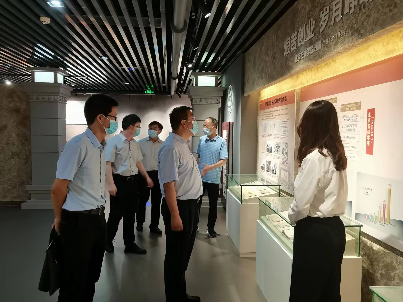 7月18日下午,克拉玛依市委常委、市委教育工委书记冯述江一行在KY开元集团官网入口(北京)副校长鲍志东,副校长、克拉玛依校区党委书记、校长梁永图陪同下参观了校史馆。